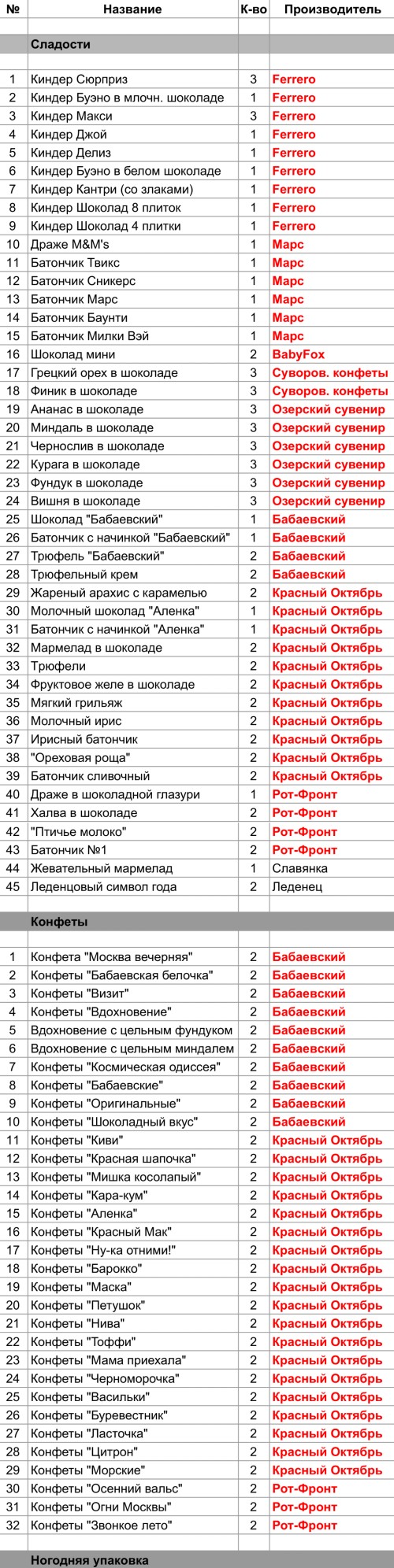 Опубликовано в Составы подарков