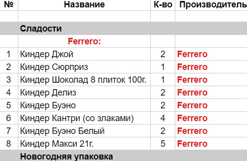 Опубликовано в Составы подарков