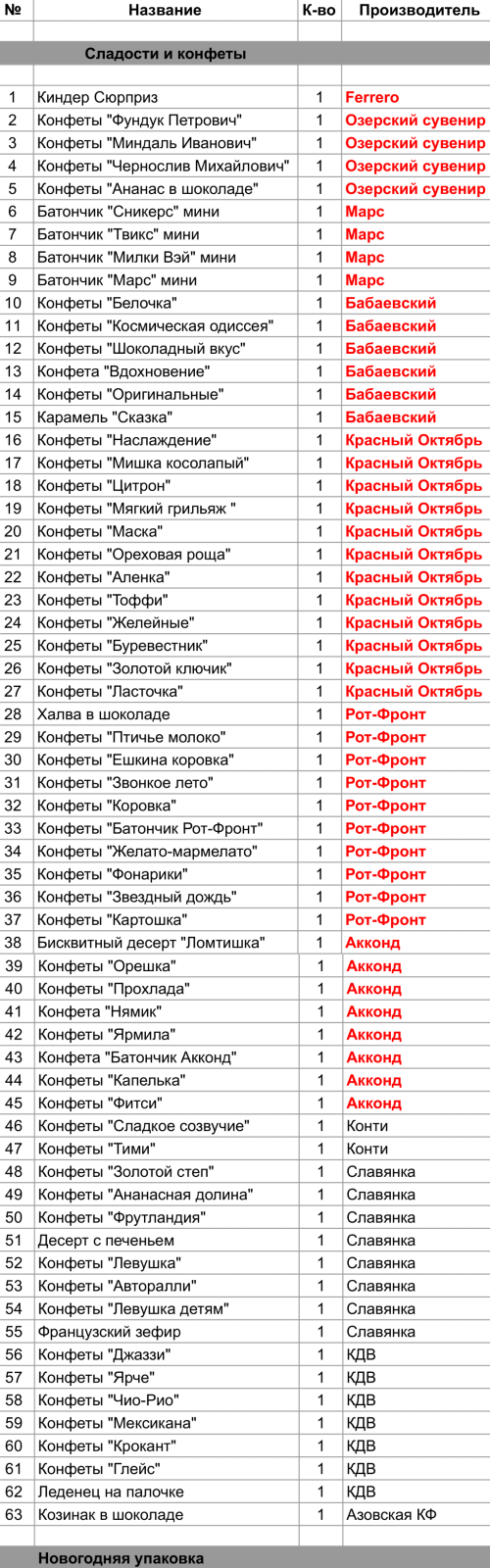 Опубликовано в Составы подарков